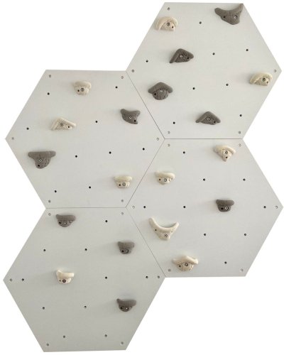 Ścianka wspinaczkowa sześciokątna 4x szara płyta + 20 białe/szare uchwyty