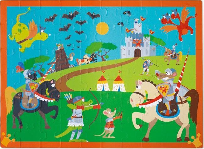 Puzzle Rycerz to zestaw składający się z 60 elementów. Wspaniała rozwijająca zabawa dla każdego malucha, który lubi zabawę z puzzlami. Poszczególne elementy należy dopasować i połączyć ze sobą tak, aby stworzyć obrazek.