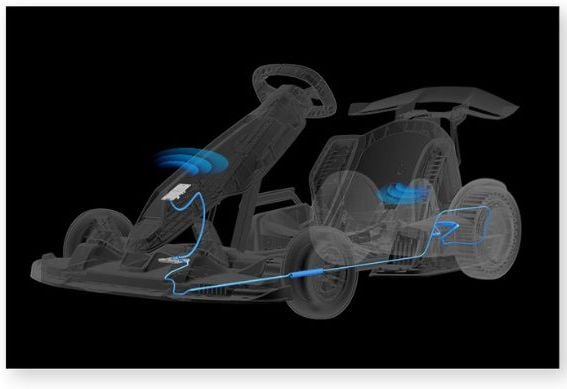 Wszystkie unikalne cechy Gokarta PRO pozwalają Ci poczuć się jak profesjonalny zawodnik. Ninebot Gokart PRO jest wyposażony we wbudowane głośniki Bluetooth dla różnych dźwięków wyścigowych, które można wybrać za pomocą aplikacji Segway-Ninebot. Głośnik może być również używany jako niezależny głośnik bluetooth do odtwarzania muzyki podczas jazdy.