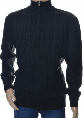 Selantino Ciepły wełniany sweter męski na zamek rozpinany szetland z wełny L czarny