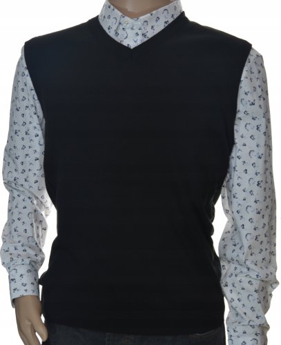 Selantino Sweter męski wełniany bez rękawów bezrękawnik pulower kamizelka męska XL czarna