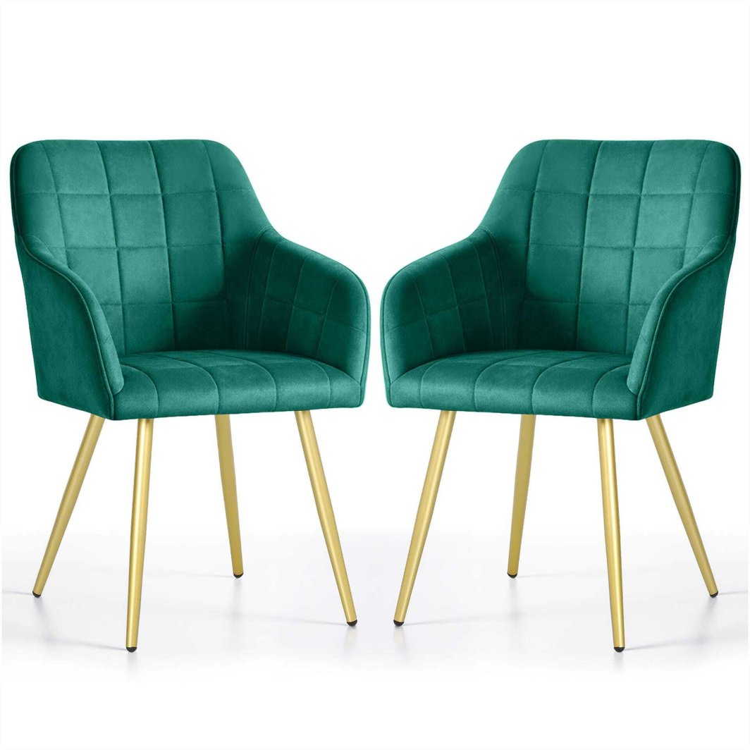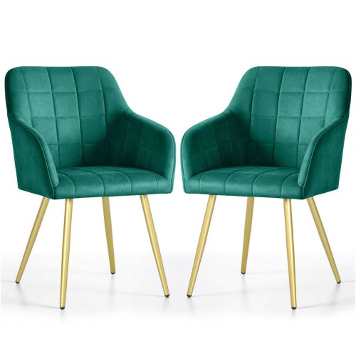 Selsey 2x Krzesło tapicerowane z przeszyciami kwadratowymi Butelkowa Zieleń LUXANO Złote nogi