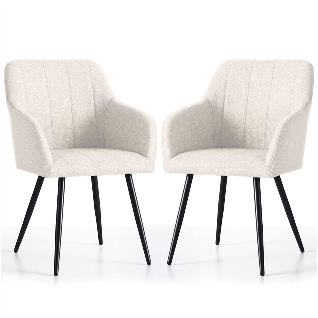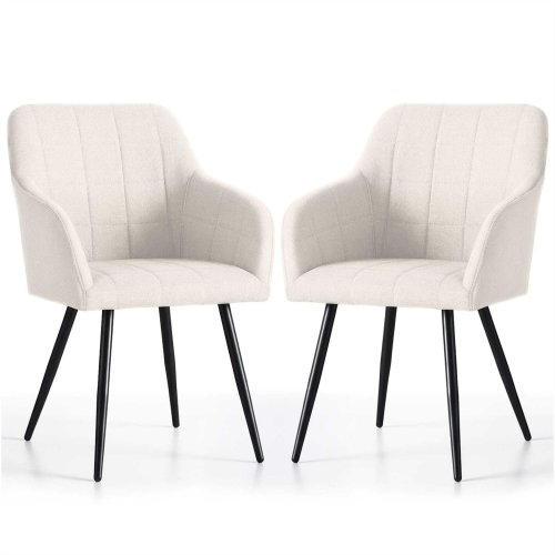 Selsey 2x Krzesło tapicerowane z przeszyciami kwadratowymi Kremowe LUXANO Czarne nogi tkanina Lumos