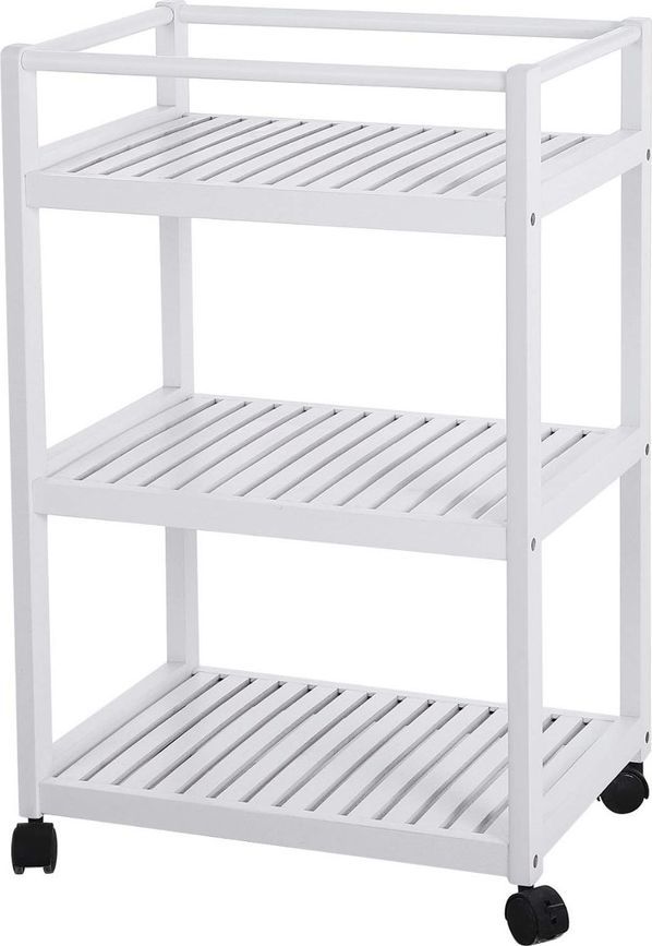 Szukasz mebla, dzięki któremu najbardziej potrzebne rzeczy będziesz mieć zawsze pod ręką? Nasz mobilny regał Troller okaże się więc strzałem w dziesiątkę! Wykonany z bambusa mebel charakteryzować się będzie naturalnym pięknem, wysoką trwałością oraz dużą lekkością, co uczyni z niego pożądany dodatek do każdego wnętrza. Regał rozpoczyna się czterema mocnymi kółkami o gładkiej powierzchni, które podtrzymują trzy półeczki zbudowane z pionowych listewek. Szczegóły produktu: otwarta struktura regału gwarantuje odpowiednią cyrkulację powietrza, co chroni Twoje rzeczy przed pleśnią, górna półka posiada wysoki rant, który nie tylko uchroni przedmioty przed wypadaniem, ale także będzie wygodnym uchwytem podczas przesuwania całego regału, biała barwa ślicznie kontrastuje z naturalną strukturą bambusa, wykorzystany do budowy mebla surowiec pochodzi z ekologicznych, zrównoważonych plantacji.