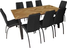 Selsey Stół Brighton 220x95 cm blat w jodełkę z zestawem krzeseł tapicerowanych Zagorac czarne
