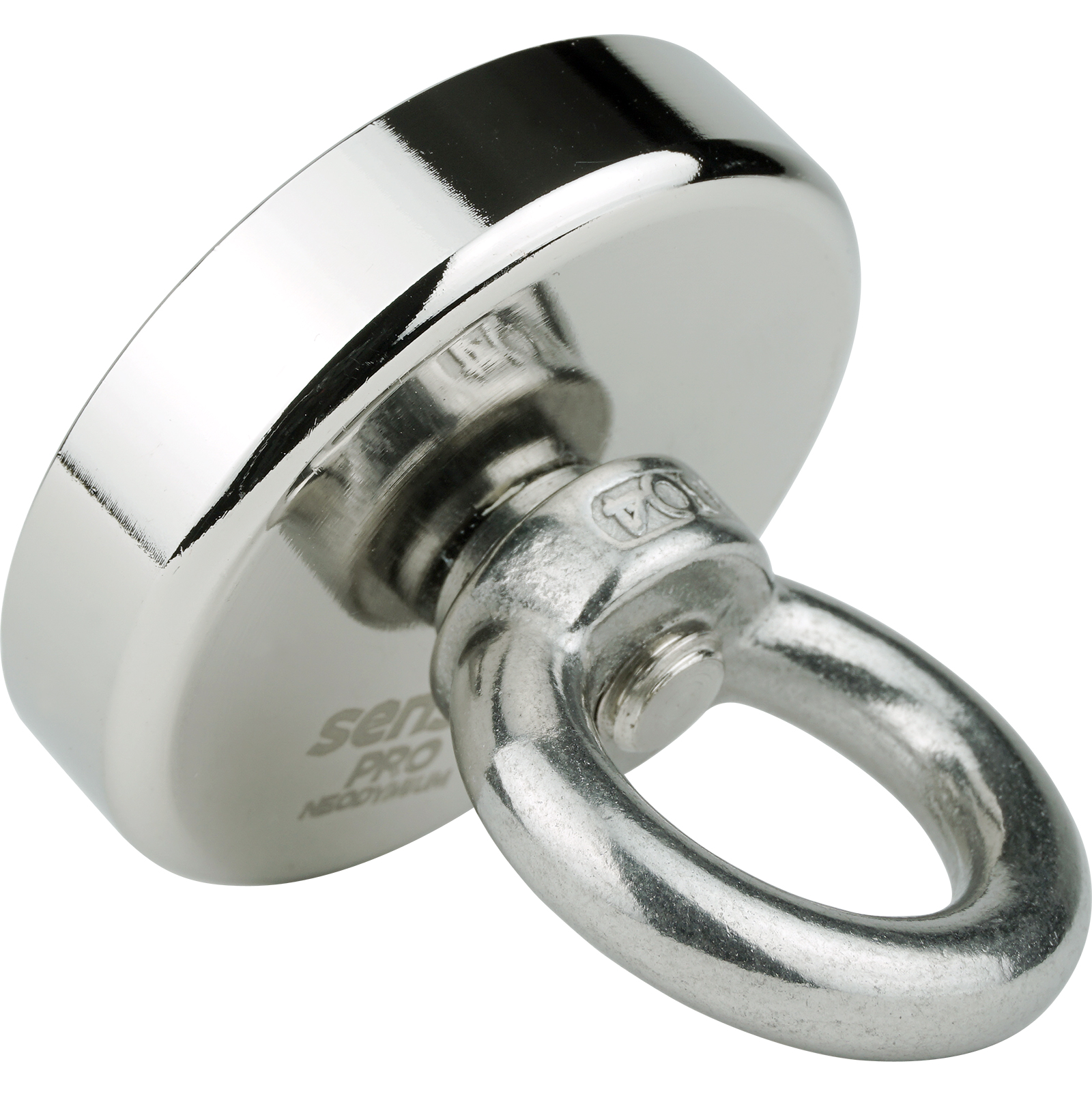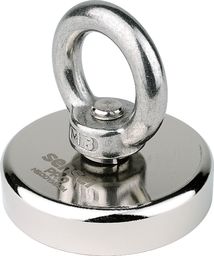Co dodatkowo wyróżnia oferowany magnes to fakt, że jego uchwyt wykonany jest zestali nierdzewnej klasy 304. Pomimo niekorzystnego środowiska i dużych sił, jednolita i gładka struktura stali nierdzewnej sprawdzi się znacznie lepiej od uchwytów ze stali węglowej w powłokach cynkowych, które ulegają zdrapaniu i mogą przecierać linę.Dzięki takiej budowie uchwytu, stosowanie kauszy z oferowanym magnesem nie jest konieczne.