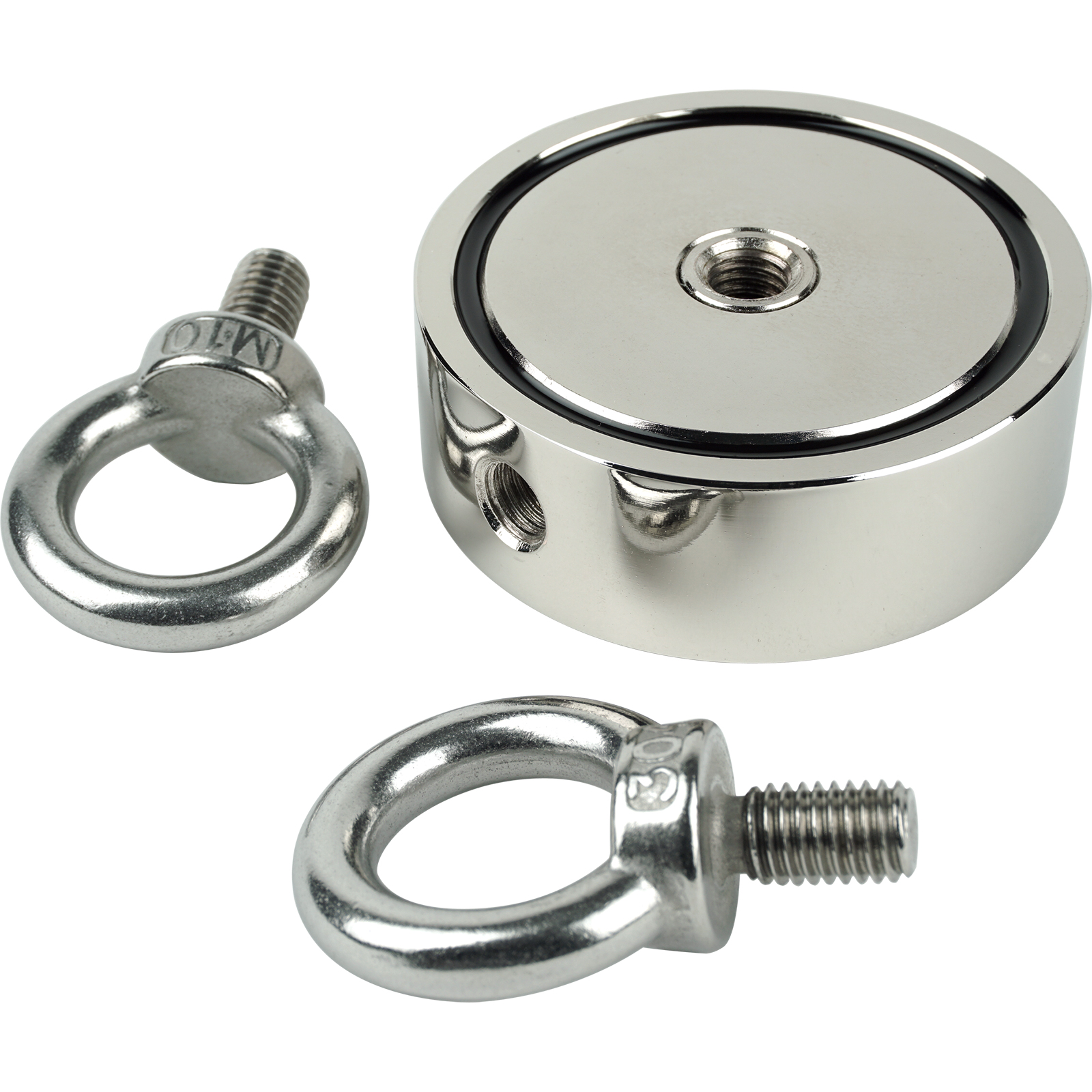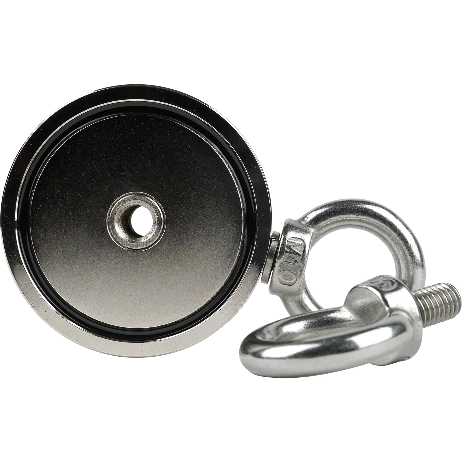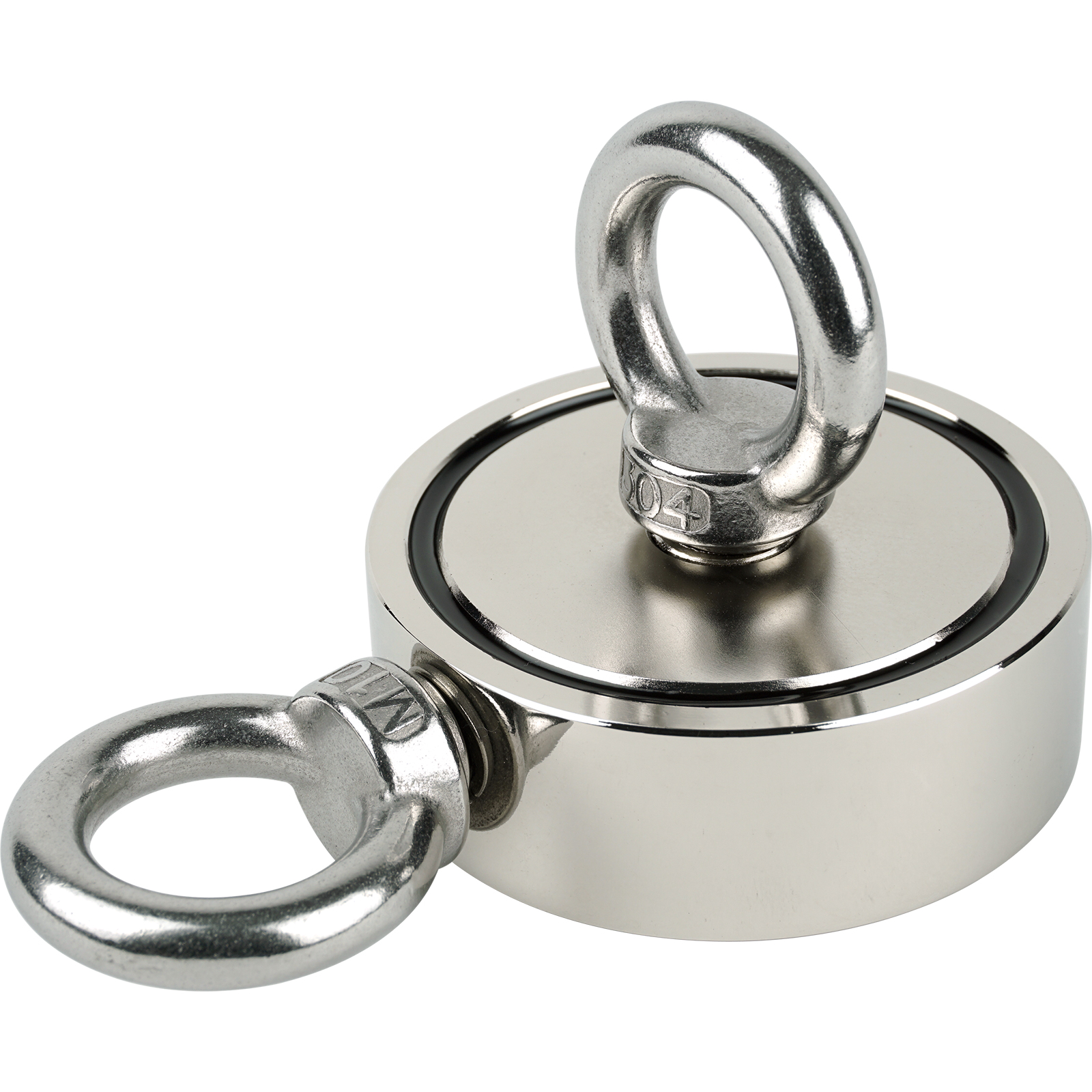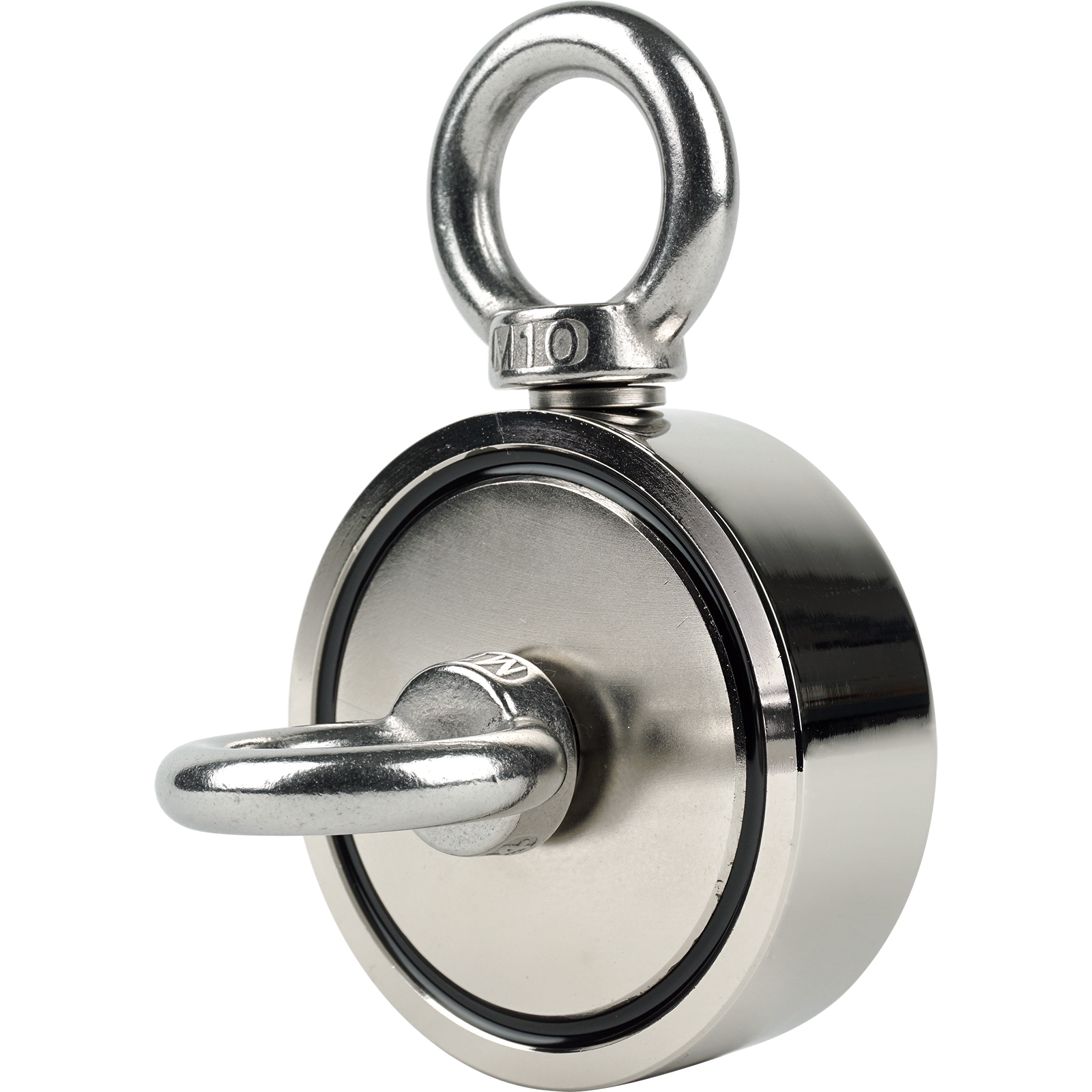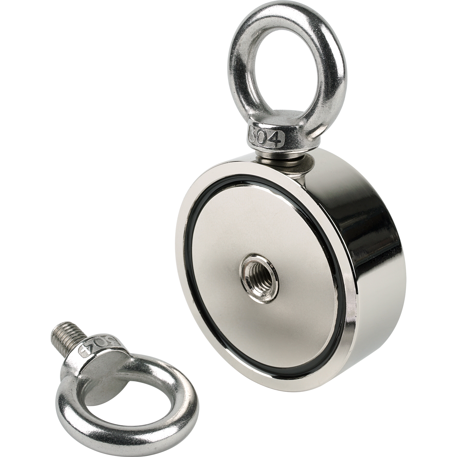 Co dodatkowo wyróżnia oferowany magnes to fakt, że jego uchwyt wykonany jest zestali nierdzewnej klasy 304. Pomimo niekorzystnego środowiska i dużych sił, jednolita i gładka struktura stali nierdzewnej sprawdzi się znacznie lepiej od uchwytów ze stali węglowej w powłokach cynkowych, które ulegają zdrapaniu i mogą przecierać linę.Dzięki takiej budowie uchwytu, stosowanie kauszy z oferowanym magnesem nie jest konieczne.