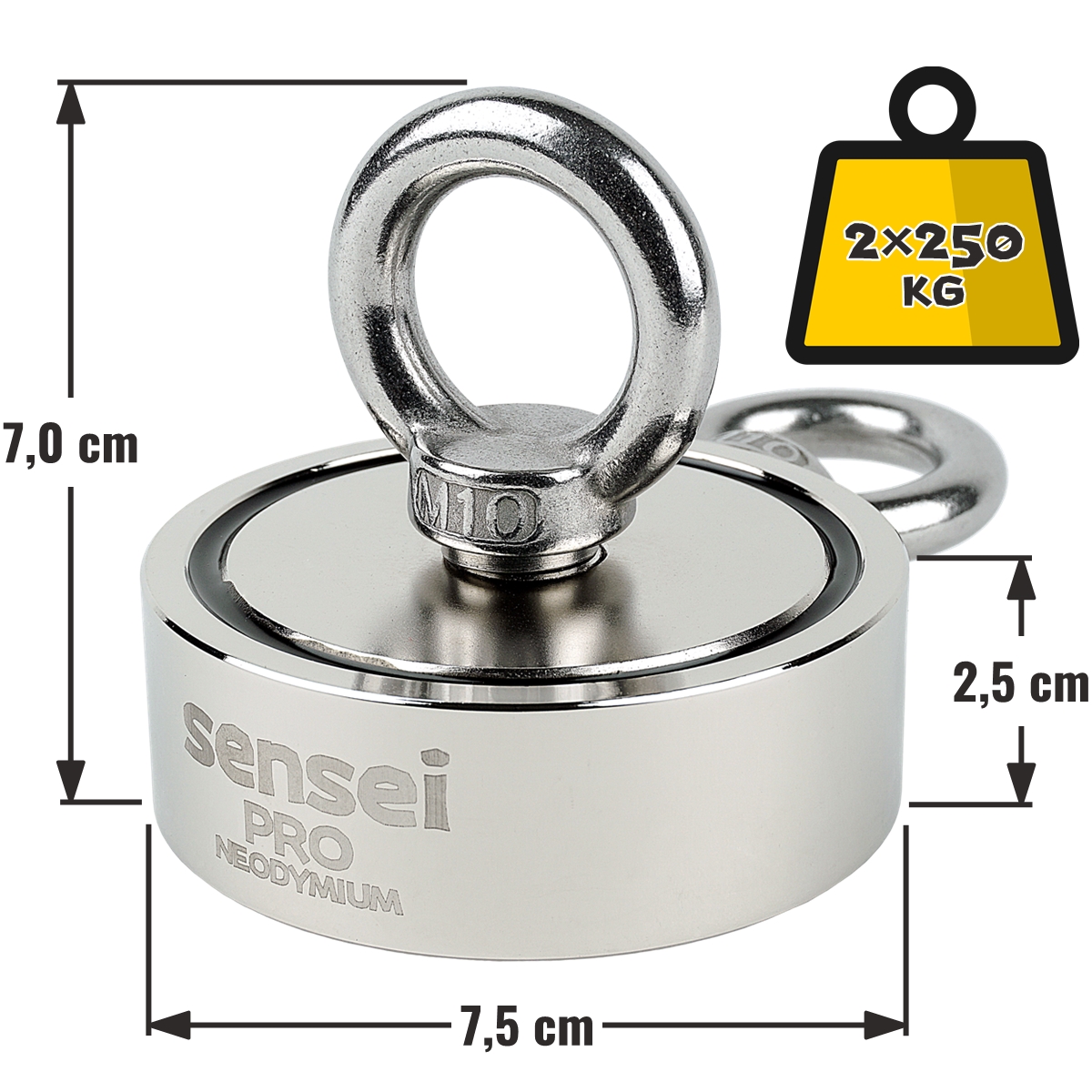 Sensei MAGNES NEODYMOWY 2x250 KG SENSEI N52 + 2 UCHWYTY