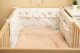 Ochraniacz do łóżeczka pasuje do każdego standardowego łóżeczka dziecięcego. Wyróżnia się pięknymi materiałami i wszytą falbanką, które sprawią, że pokoik maluszka zyska wyjątkowy urok. Ochraniacz wykonany jest z miękkiej bawełny z nadrukiem. Wypełnienie z owaty ochroni dziecko przed urazami podczas poruszania się po łóżeczku. Utrzymanie ochraniacza we właściwej pozycji zapewnia gęste wszycie tasiemek służących do przywiązania go do szczebelków łóżeczka. Zaprojektowany został do łóżeczka o wymiarach 120x60 cm. Ochraniacz będzie doskonałym dodatkiem do wyprawki dla niemowlaka.