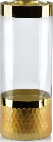 Zachowany w przezroczystej kolorystyce z złotym wzorem na podstawie doniczki oraz dolnej części ze złotymi złuszczonkami. Przepiękna i nowoczesna. W dzisiejszych czasach doniczka to nie tylko pojemnik na kwiaty, ale też wyjątkowa dekoracja wnętrza. Świeże kwiaty cięte i sztuczne sprawiają, że wnętrze jest przytulniejsze i w niektórych przypadkach może wpływać na nasze samopoczucie. Kwiaty zawsze są dobrym pomysłem na prezent, a z pewnością sprawią wiele radości wręczone wraz z doniczką.