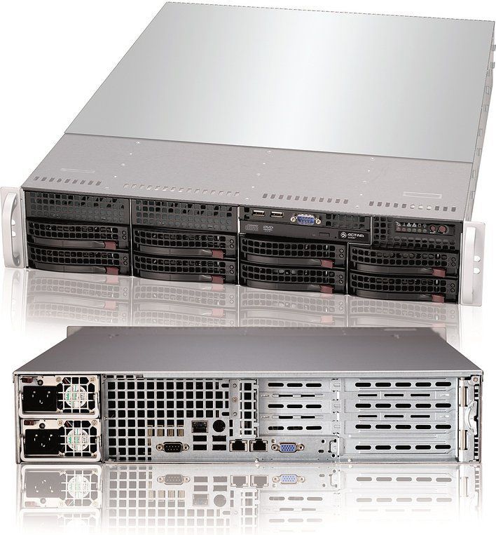 ![]() | Obudowa typu RACK o wysokości 2U. Dostępne są dwa typy obudów - obudowa z pojedynczym zasilaczem 600W oraz obudowa z zasilaczem redundantnym o mocy 740W. Obie obudowy mieszczą do 8-miu dysków hot-swap SAS/SATA oraz napęd optyczny w wersji "slim". Karty rozszerzeń użyte w tej obudowie muszą być kartami typu "low-profile". |