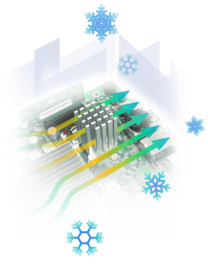 Wszystkie ASUSTOR NAS są zaprojektowane do użytku 24/7 i nadają się do użytku. Urządzenia ASUSTOR NAS przeszły również rygorystyczne testy, takie jak testy upadku i testy spalania, aby sprawdzić wytrzymałość w ekstremalnych warunkach. Do wrażliwych elementów dodano radiatory, które rozpraszają ciepło, pomagając zachować żywotność urządzenia.