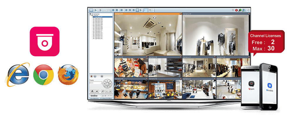 Serwer plików posiada dwa darmowe kanały dla kamer IP, co umożliwia utworzenie stacji monitoringu dla prywatnego domu bądź przedsiębiorstwa. Wraz ze wzrostem potrzeb, ilość kanałów może być rozszerzona poprzez zakup dodatkowych licencji. Liczba obsługiwanych kanałów może różnić się w zależności od wybranego urządzenia.