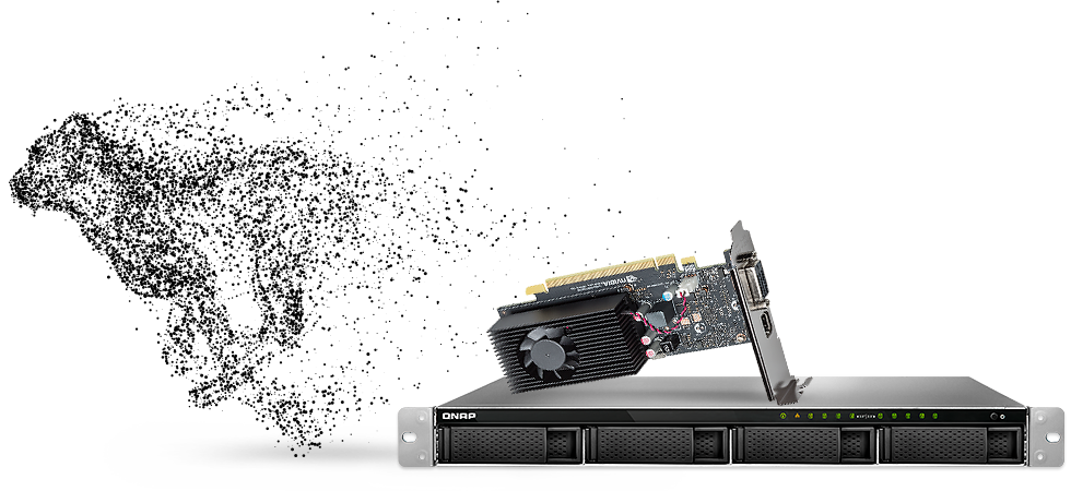 Karty graficzne są zoptymalizowane pod kątem obliczeń i przekształceń graficznych, ale wymagają znacznie więcej energii niż inny sprzęt. Model TS-977XU-RP zapewnia zasilanie o mocy 300 W, a gniazdo PCIe z obsługą niskoprofilowych kart graficznych AMD Radeon™ lub NVIDIA® GeForce®, które nie wymagają dodatkowego zasilania. Instalacja karty graficznej może zwiększyć wydajność takich aplikacji, jak tych do edycji wideo, transkodowania wideo 4K, przetwarzania obrazów w systemie QTS oraz wydajność maszyn wirtualnych za pośrednictwem funkcji GPU passthrough.