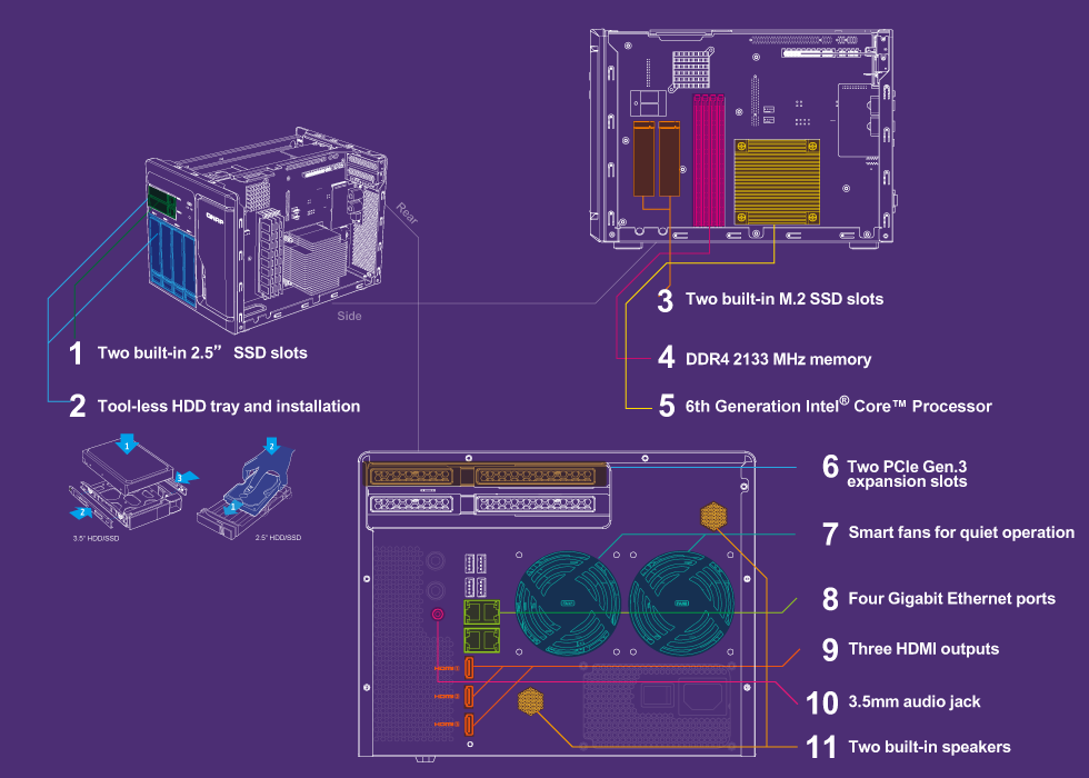 Jednostkę wyposażono w złącze HDMI, które umożliwi podłączenie monitora bądź innego urządzenia z wejściem HDMI. Pozwoli to na bezpośrednią obsługę serwera plików. Port HDMI umożliwi wykorzystanie urządzenia jako odtwarzacza muzyki, wideo czy stworzenie stacji fotograficznej, a także wykorzystanie podłączonego monitora do podglądu kamer w systemie monitoringu.