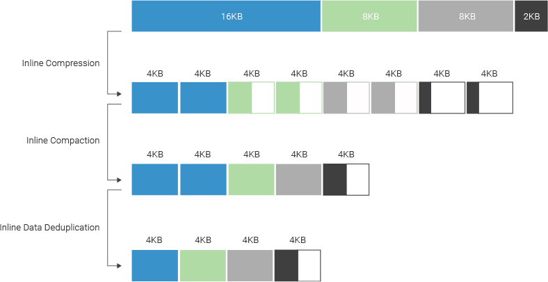 System QuTS hero obsługuje zaawansowane, oparte na blokach technologie redukcji danych (w tym liniową deduplikację danych, kompresję i kompakcję) w celu redukcji rozmiaru plików, zapewniając oszczędność pamięci masowej i optymalizację wydajności. Na przykład: jeśli 20 maszyn wirtualnych na serwerze NAS zostanie zreplikowanych przy użyciu tego samego szablonu, wymogi dotyczące przestrzeni pamięci masowej dla wszystkich 20 maszyn wirtualnych zostaną zredukowane o nawet 95%. Niezależnie od tego, czy model TVS-h474 pełni rolę głównej, czy zapasowej pamięci masowej, optymalizuje zużycie przestrzeni, zapewniając filar dla niezawodnego magazynowania danych w erze Big Data. W ten sposób rozwiązania all-flash zwiększają efektywność kosztów, poprawiając jednocześnie zarówno wydajność zapisu losowego, jak i eksploatację dysków SSD.