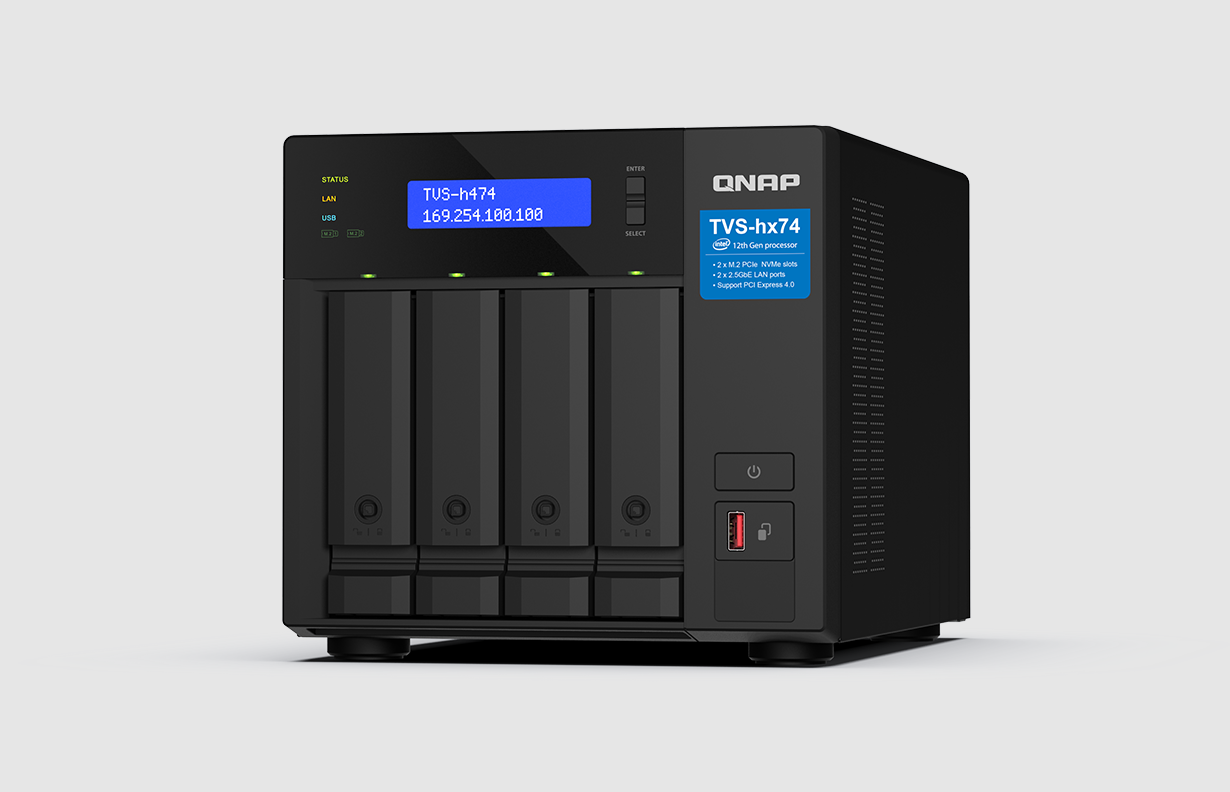 Model TVS-h474 wykorzystuje dwurdzeniowy procesor Intel® Pentium® Gold oraz układ graficzny Intel® UHD Graphics 710 w celu zwiększenia możliwości wielozadaniowości, oferując małym i średnim przedsiębiorstwom bezpieczne, niezawodne i wydajne rozwiązanie NAS.