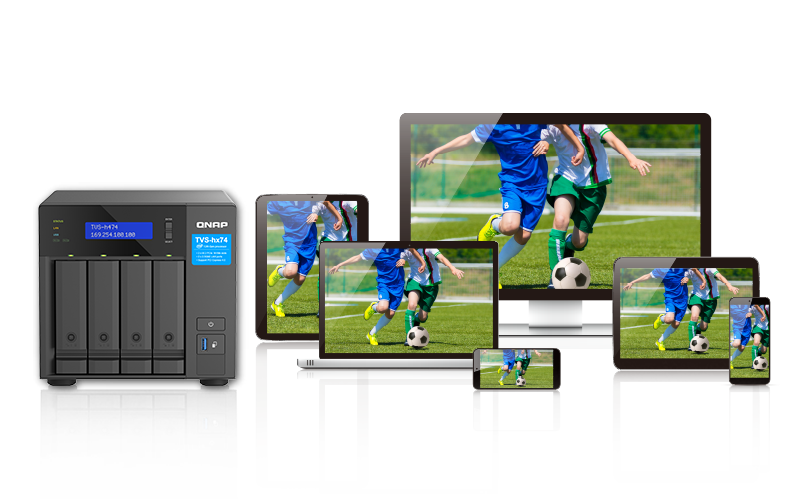 Podłączając TVS-h874 do wyświetlacza HDMI, można bezpośrednio oglądać zawartość multimedialną zapisaną na serwerze NAS, obsługiwać maszyny wirtualne z aplikacji Virtualization Station lub korzystać z multimediów za pomocą odtwarzacza HD Player lub odtwarzaczy innych firm.