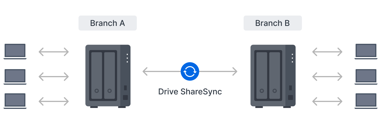 Popraw wydajność przepływu pracy i zgodność zespołu w różnych lokalizacjach danych dzięki automatycznej synchronizacji lokalizacji w jednym lub dwóch kierunkach. Pliki i foldery są aktualizowane w różnych lokalizacjach, dzięki czemu wszyscy pozostają zgodni, niezależnie od tego, czy są w domu, w biurze, czy w różnych oddziałach — wszystko to przy pełnej kontroli nad danymi.