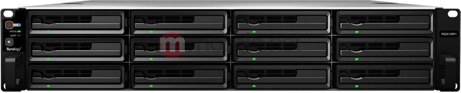 Synology RS2414+ to sieciowy serwer plików wyposażony w dwanaście kieszeni na dyski SATA II 3.5 lub 2.5 cala. Posiada interfejs sieciowy 4x Gigabit Ethernet, dwa złącza USB 3.0 i dwa złącza USB 2.0. Może pełnić rolę m.in. stacji monitoringu, serwera iTunes lub serwera FTP.