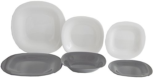Serwis obiadowy Luminarc Carine to znakomity wybór dla tych, którzy cenią sobie elegancję oraz nowoczesny styl. Jego kwadratowa forma z delikatnie zaokrąglonymi rogami nadaje mu subtelny, a jednocześnie stylowy charakter, który doskonale wpasuje się w różnorodne aranżacje stołowe. Dzięki biało-czarnemu wykończeniu, ten serwis będzie idealnym dodatkiem do każdej kolacji czy przyjęcia.