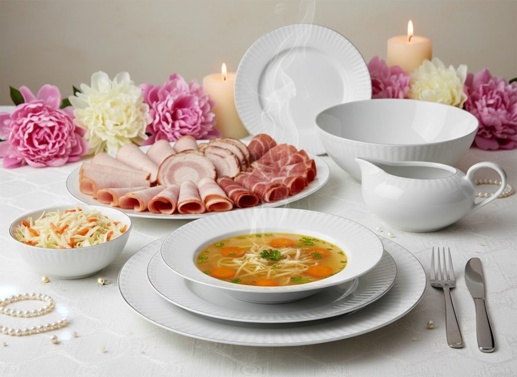 Serwis obiadowy dla 12 osób Yvonne Sonata – klasyka, elegancja i harmonia na Twoim stole