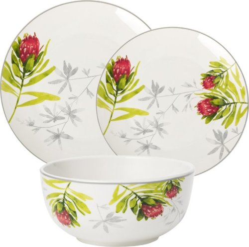 Serwis obiadowy porcelanowy Florina Protea 18 elementów zestaw talerzy dla 6 osób piękny wzór kwiaty