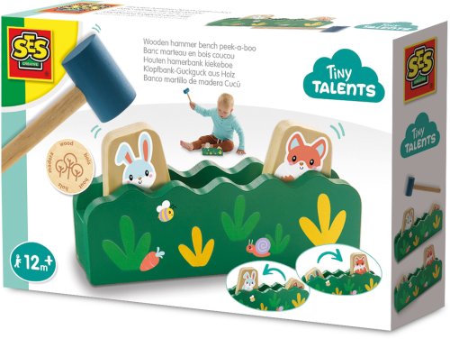 SES Drewniana ławka z młotkiem Peek-a-Boo 13145 – Idealna zabawa dla Twojego malucha