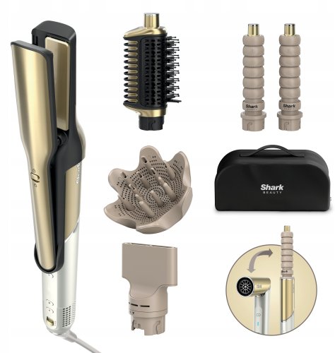 Shark Glam HD6052SEU to nie tylko lokówko-suszarka, to kompleksowe narzędzie do stylizacji, które dostosowuje się do Twoich potrzeb. Dzięki inteligentnej regulacji temperatury i różnorodnym trybom pracy, możesz łatwo uzyskać pożądany efekt, niezależnie od typu włosów. Ergonomiczny design oraz luksusowe złote wykończenie sprawiają, że korzystanie z tego urządzenia to czysta przyjemność.