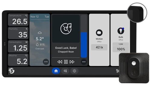 Shelly Wall Display X2 to panel sterowania z 6,95-calowym kolorowym ekranem dotykowym i wbudowanym przekaźnikiem 5 A, który umożliwia sterowanie oświetleniem, monitorowanie zużycia energii, kontrolę temperatury i wilgotności oraz tworzenie scen automatyzacji. Dzięki integracji z aplikacją Shelly Smart Control i Home Assistant zyskujesz dostęp do pełnej funkcjonalności z poziomu jednego interfejsu. Dołączony czujnik Shelly BLU H&T pozwala na precyzyjne odczyty środowiskowe i automatyczne reakcje urządzeń. Produkt nie wymaga dodatkowego hubu i łączy się bezpośrednio przez Wi-Fi lub Bluetooth. Może również pełnić funkcję bramki Bluetooth dla innych urządzeń BLE. Z powodzeniem zamontujesz go w puszce ściennej.