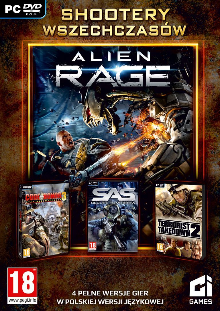 Daniem głównym zestawu Shootery Wszechczasów jest Alien Rage, czyli pierwszoosobowa strzelanka w uniwersum science-fiction, nastawiona na nieustanną eksterminację obcych za pomocą rozmaitych typów broni. Wzorem klasycznych przedstawicieli gatunku, rozgrywka jest liniowa, natomiast akcja nie zwalnia ani na moment. Kluczem do sukcesu jest zręczność gracza, który wielokrotnie musi zmierzyć się z wieloma przeciwnikami.