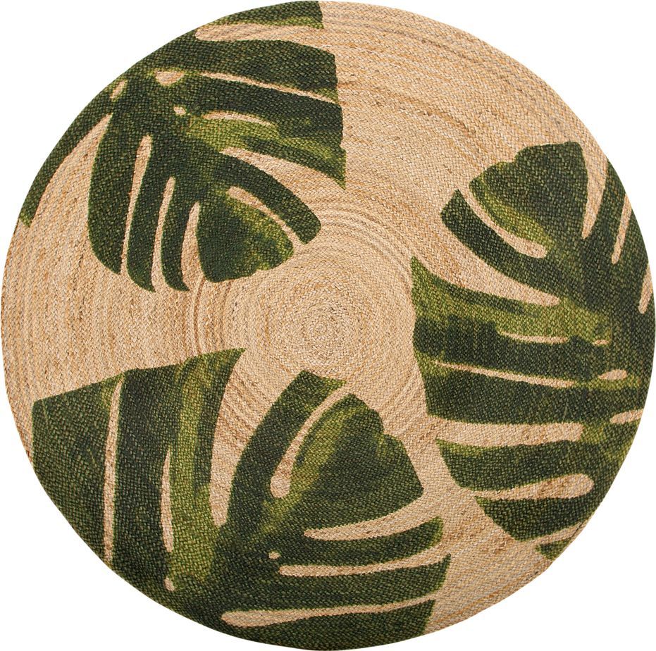 Shumee Dywan okrągły z juty w liście monstery 140 cm beżowo-zielony INCIK