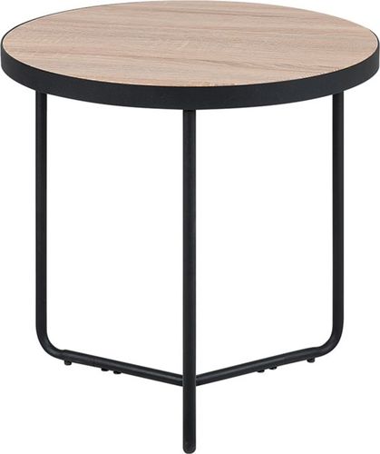 Wydobądź charakter wnętrza swojego mieszkania tym industrialnym stolikiem kawowym. Mebel posiada okrągły blat z wykończeniem przypominającym drewno orzecha włoskiego. Jego czarne, matowe nogi zapewniają konstrukcji stabilne podparcie. Stolik idealnie sprawdza się nie tylko jako miejsce do serwowania kawy gościom, ale także w roli stolika nocnego czy pomocniczego. Wysokość: 50 Szerokość: 50 Głębokość: 50 Waga: 5.6 Materiał: MDF