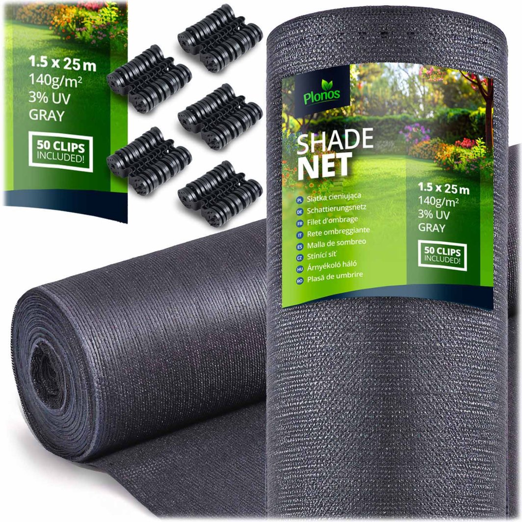 Siatka cieniująca 1,5x25m 140g/m2 + 50 zacisków szara
