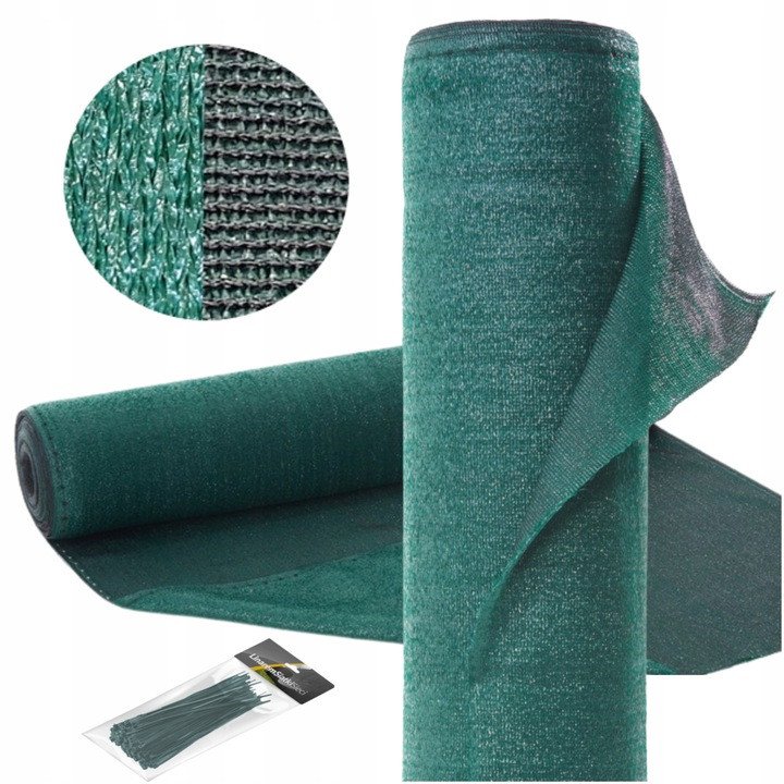Siatka cieniująca została wyposażona w wzmocnione brzegi oraz oczka montażowe wzdłuż górnej i dolnej krawędzi, co znacznie ułatwia jej instalację. W zestawie znajdują się mocniejsze opaski zaciskowe, które zapewniają stabilne mocowanie siatki do różnych konstrukcji.