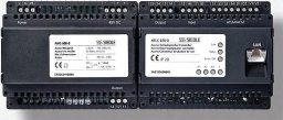 Kontroler głośnikowy do drzwi wejściowych z zasilaczem w obudowie panelu sterowania jako interfejs do podłączania i zasilania komponentów drzwi do sieci Access Professional.