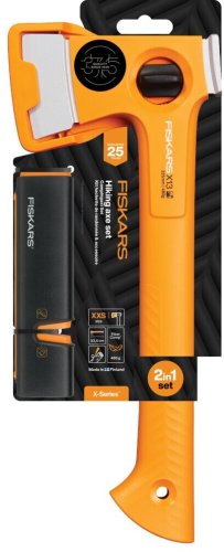 W zestawie z siekierą znajduje się ostrzałka Xsharp, która umożliwia łatwe ostrzenie zarówno siekier, jak i noży. Posiada ceramiczne kamienie szlifierskie, które zapewniają długotrwałą wydajność. Mechanizm ostrzenia gwarantuje prawidłowy kąt, co ułatwia obsługę i pozwala na szybkie przywrócenie ostrości narzędzi.