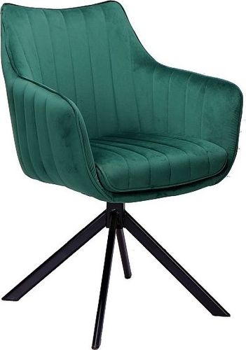 Wygodne krzesło AZALIA VELVET z podłokietnikami Krzesło AZALIA VELVET to propozycja dla osób szukających nietuzinkowego krzesła do swojego stołu. Elementem wyróżniający te welurowe krzesło jest obrotowe siedzisko. Dzięki możliwości obracania się możemy wygodnie odejść od stołu, bez konieczności odsuwania krzesła. Dodatkowo takie krzesło może pełnić funkcję wygodnego krzesła do komputera, w prywatnym gabinecie. Krzesło tapicerowane jest tkaniną aksamitną, która ceniona jest za swoją wyjątkową miękkość, a także walory wizualne tj. delikatny połysk w świetle słonecznym. Dekoracyjne przeszycia na materiale podkreślają piękno aksamitu. Prezentowane krzesło z podłokietnikami pozwoli nam na wygodne oparcie rąk w czasie siedzenia. Solidna metalowa podstawa krzesła AZALIA VELVET pomalowana jest na czarny matowy kolor. Metalowa podstawa gwarantuje doskonałą stabilność krzesła. Cechy produktu tapicerowane zielonym aksamitem, oparcie z przeszyciami, krzesło z podłokietnikami solidna podstawa z metalu, nogi w kolorze czarnym, podstawa obrotowa, do samodzielnego montażu, w swojej ofercie posiadamy szeroki wybór mebli pozwalających na kompleksowe wyposażenie mieszkania.