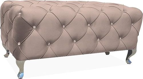 Ławka HESTIA VELVET w ciepłym beżowym kolorze tapicerowana jest miękką i przyjemną w dotyku tkaniną aksamitną posiadającą dekoracyjne pikowania z kryształkami.