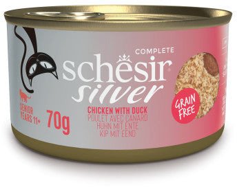 Karma mokra Schesir Silver Kurczak z Musem Kaczki w Bulionie to znakomity wybór dla starszych kotów, które potrzebują zrównoważonej diety. Dzięki składnikom najwyższej jakości, ta karma nie tylko zachwyca smakiem, ale również dostarcza niezbędnych składników odżywczych, wspierających zdrowie Twojego pupila.