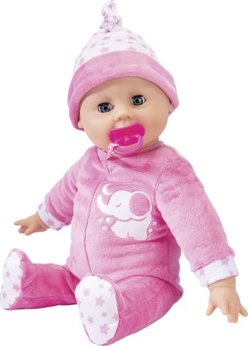 Lalka ma wysokość 38 cm i jest wykonana z miękkiego materiału, co sprawia, że jest przyjemna w dotyku. Ubrana w śpioszki oraz czapeczkę, które można zdjąć, zapewnia komfort i radość podczas zabawy.