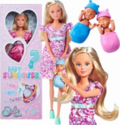 Lalka Steffi w ciąży bobas niespodzianka różowo-fioletowa sukienka