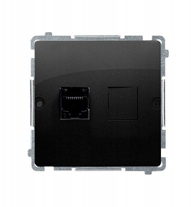 Simon Basic Gniazdo komputerowe RJ45 pojedyncze, kategoria 5e (moduł). Montaż gniazda na wkręty do puszki czarny BMF51.02/49