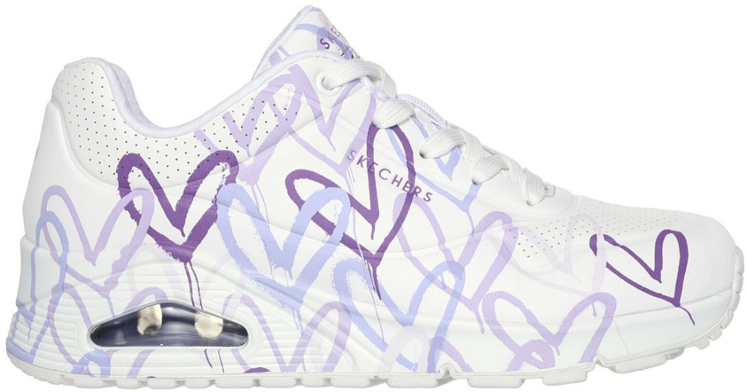 Cieszący się światową renomą muralista James Goldcrown prezentuje swoje kultowe projekty serc #Lovewall w ramach inspirującej współpracy ze Skechers. Zaprezentuj swój kreatywny styl dzięki Skechers x JGoldcrown: Skechers Street™ Uno -B Spread the Love. Wiązane, modne sneakersy z charakterystycznym dla artysty nadrukiem serca na całej powierzchni podeszwy zewnętrznej, cholewki ze skóry syntetycznej z perforacją oraz wkładką z pianki Skechers Air-Cooled Memory Foam® na koturnie i z widoczną podeszwą środkową Skech-Air® z poduszką powietrzną.