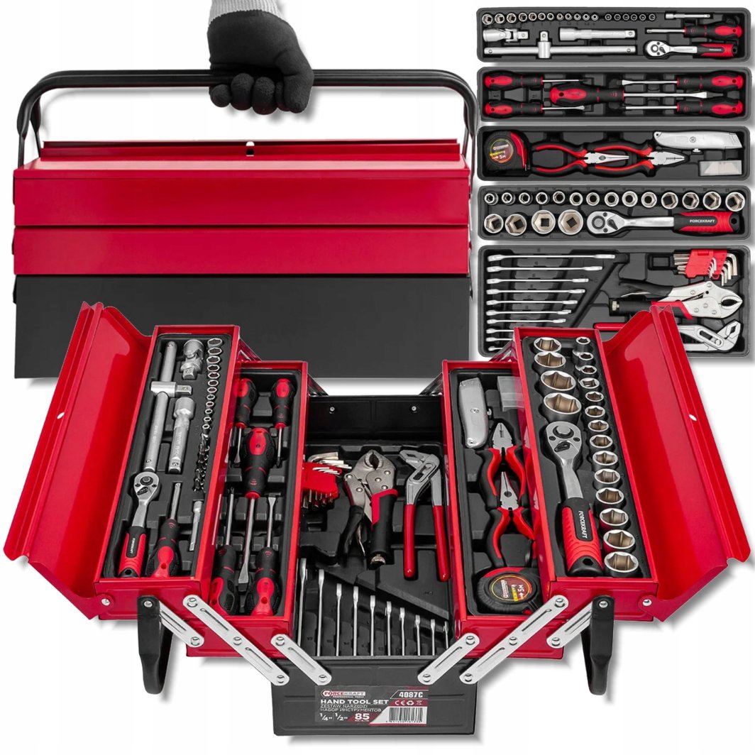 Skrzynka narzędziowa, metalowa z zestawem narzędzi 85el.