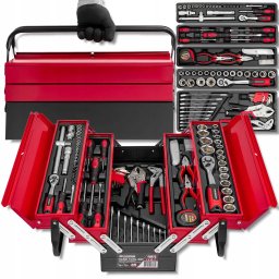 Skrzynka narzędziowa, stworzona z wytrzymałego metalu, zapewnia długotrwałość i odporność na uszkodzenia. Narzędzia wykonane ze stali chromowo-wanadowej (Cr-V) oraz stali chromowo-molibdenowej (Cr-Mo) są przystosowane do intensywnej eksploatacji, co sprawia, że są idealnym wyborem do różnorodnych zadań.