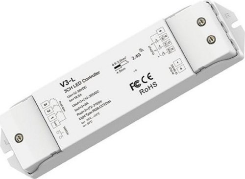 SKYDANCE V3-L nuolatinės įtampos RGB valdiklis, 12-48V, 3x 6A, Push Dimm