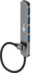 Goobay Slim 4-portowy koncentrator USB to nowoczesne rozwiązanie, które umożliwia wygodne podłączenie czterech urządzeń USB-A do jednego portu USB-C™. Jego elegancki wygląd oraz solidna aluminiowa konstrukcja sprawiają, że jest nie tylko funkcjonalny, ale także estetyczny, co czyni go idealnym dodatkiem do każdego biura czy podróży.