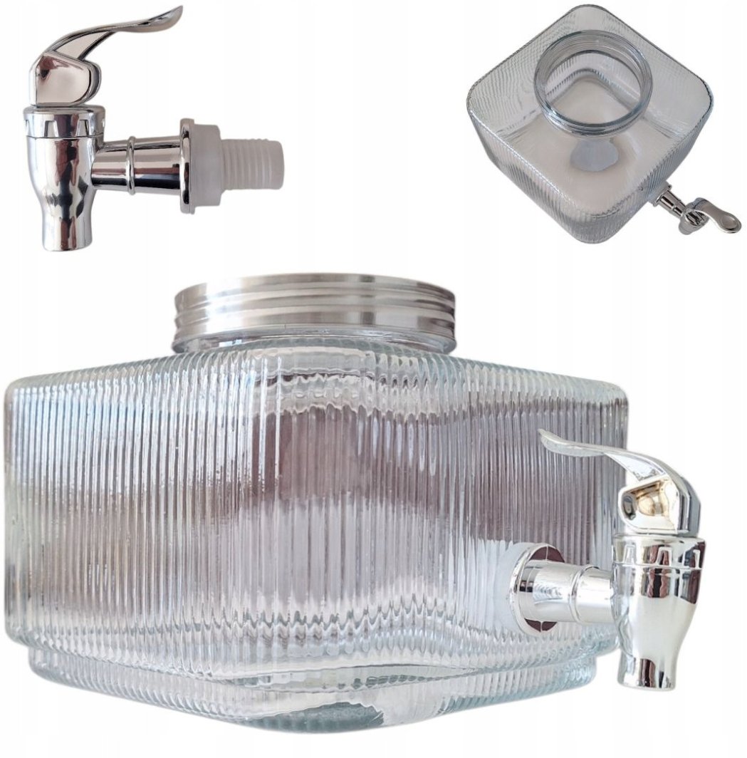 SŁÓJ SZKLANY 3l DO NAPOJÓW Z KRANIKIEM PŁASKI DO LODÓWKI