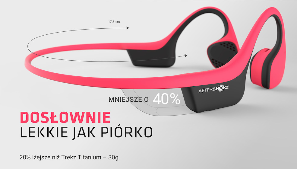 Najlżejsze i najlepiej zaprojektowane z dotychczasowych słuchawek skrywaja technologię przewodnictwa kostnego następnej generacji. Ograniczona waga słuchawek i wszędzie, gdzie możliwe, zastosowany jest tytan, by zapewnić nie tylko lepsze dopasowanie, ale także lepszą jakość dźwięku.